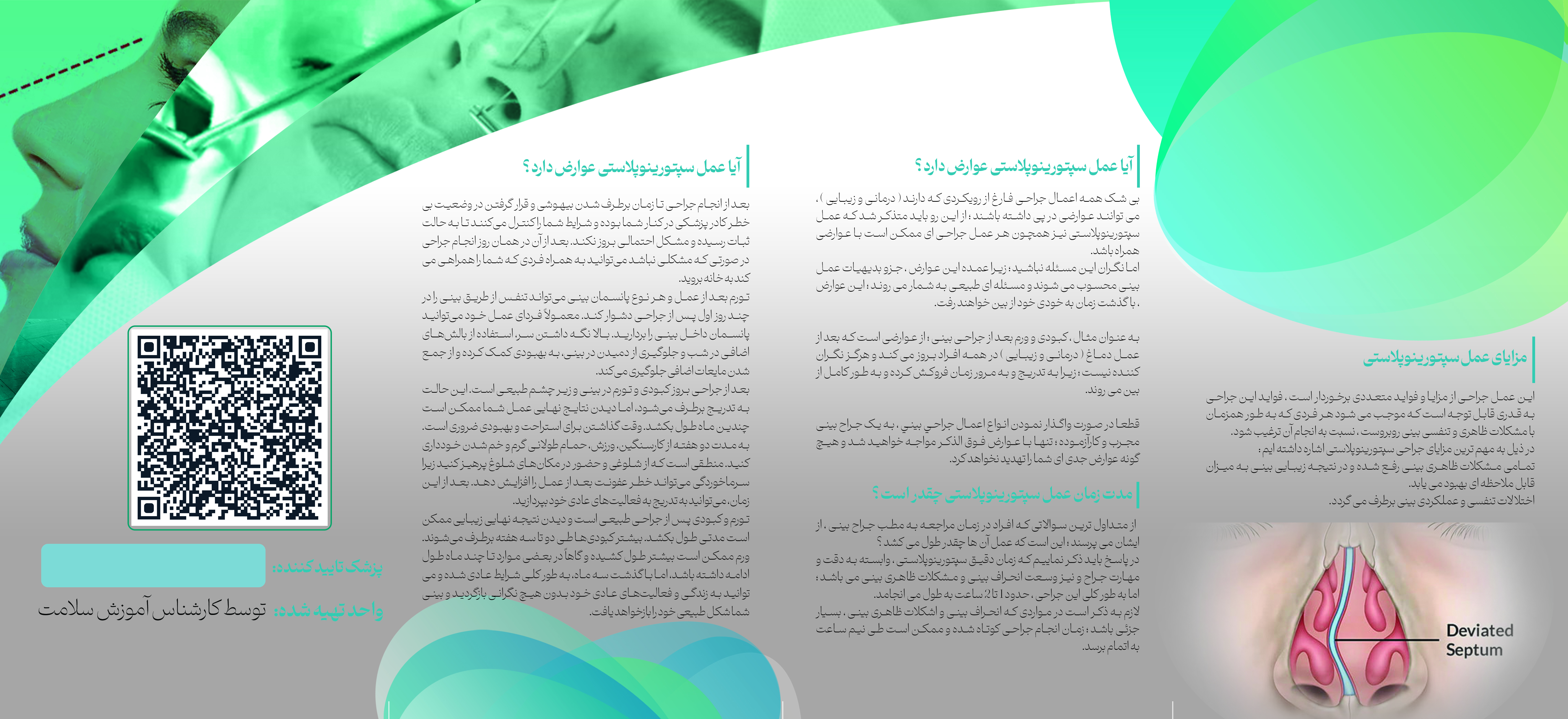 در جراحی سپتورینوپلاستی ؛ علاوه بر رفع نواقص ظاهری بینی و بهبود فرم آن ، مشکلات تنفسی ناشی از انحراف سپتوم نیز برطرف خواهند شد.